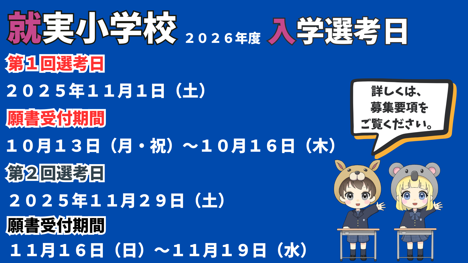 2025年度就実小学校入学選考日