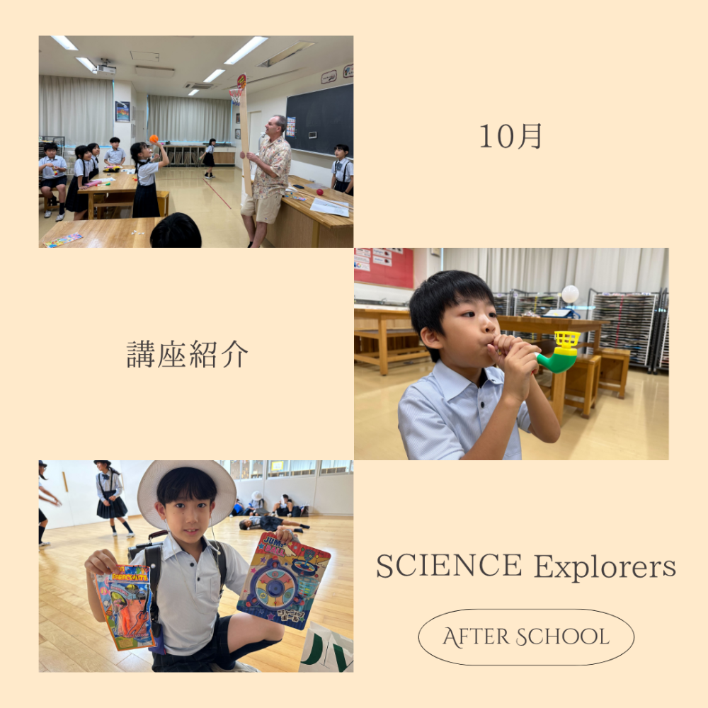 子どもたちの好奇心を刺激する講座「SCIENCE Explorers」では、毎回異なるテーマに沿って、実験を通して科学の不思議を楽しく学びます。重力・電気・空気・モーター・滑車など、身のまわりの現象を題材に、先生と一緒に「なぜ?」「どうして?」を考えながら体験的に理解を深めていきます。