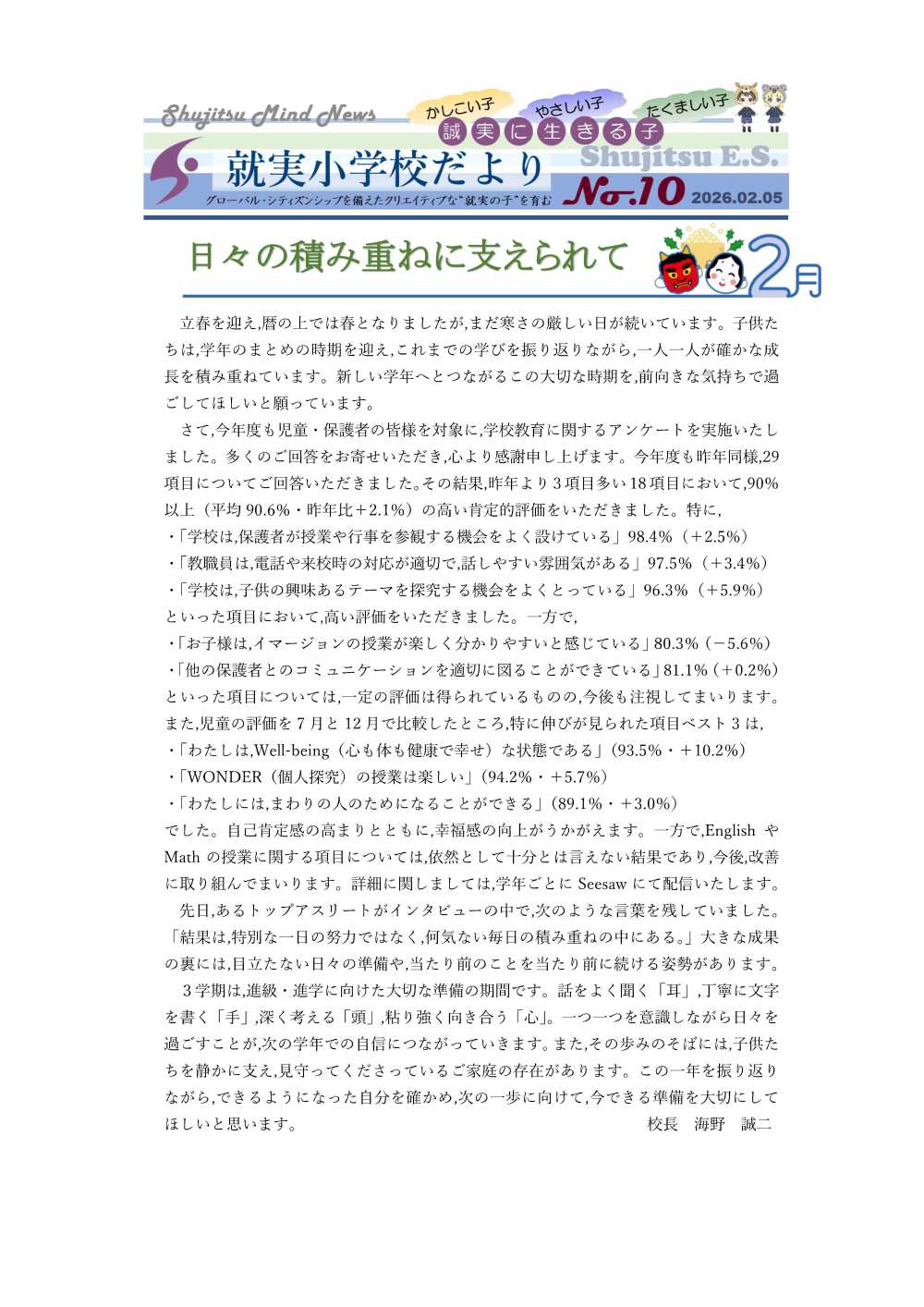 2025年度学校だより2月号です。