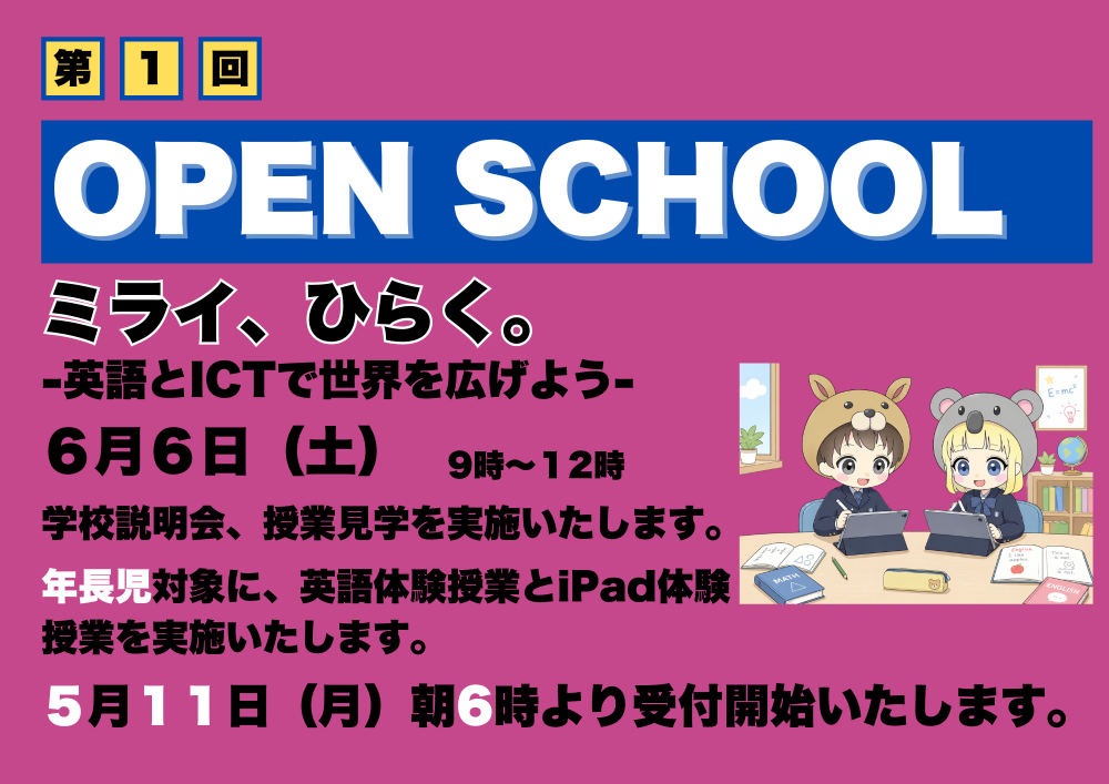 【5月11日6時から受付開始】2026年度第1回OPEN SCHOOLについて