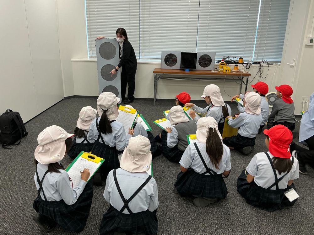 次に、映像を見ながら、本部庁舎や警察の組織について説明していただきました。地域の安全や犯罪の取り締まりだけでなく、災害時の救助を警察官も行っていることに子供たちは驚いていました。子供たちの質問にもたくさん答えていただきました。
