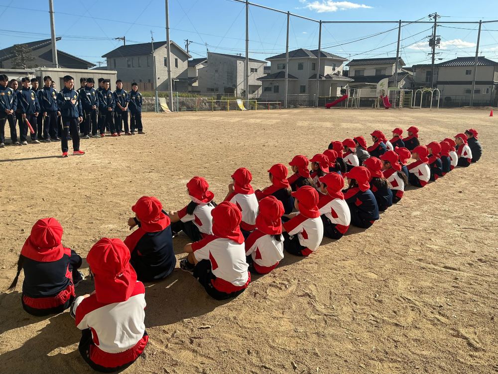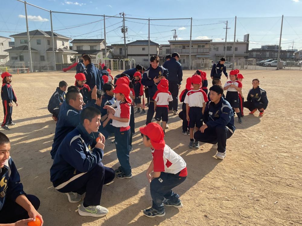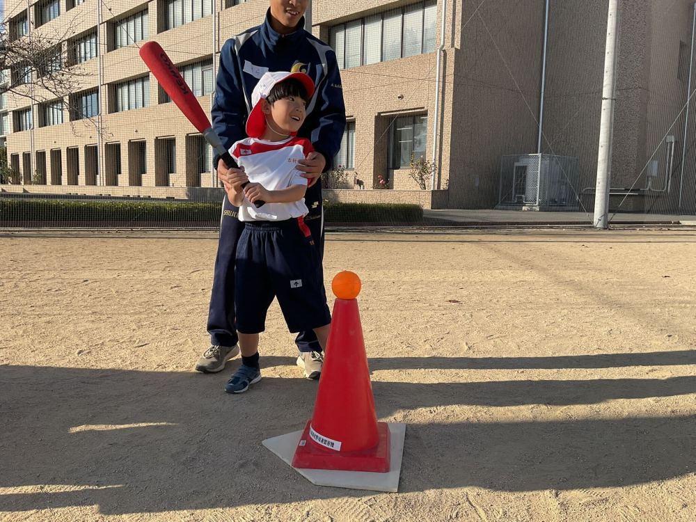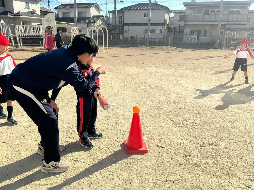 12月9日(火),就実高校野球部のお兄さんたちが来てくださり,1年生にティーボールを教えてくれました。