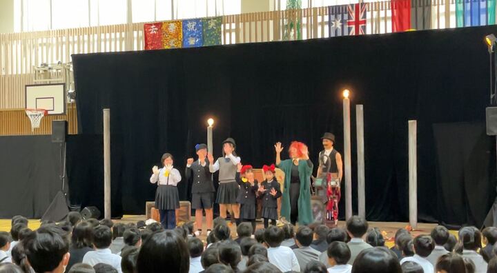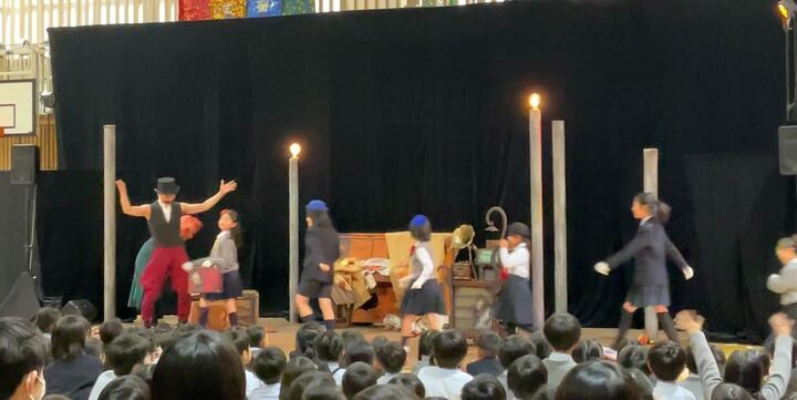 12月10日(水)、ラストラーダカンパニーの方にご来校いただき、全校児童がパントマイムの世界を体験しました。