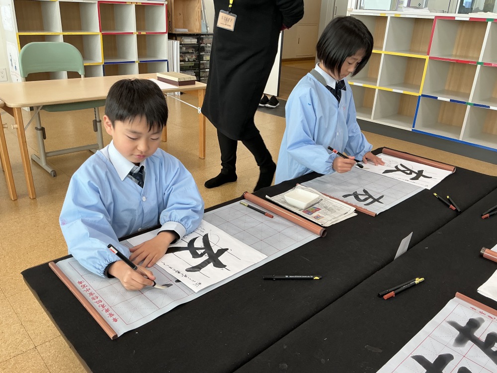 始筆と終筆に注意して練習することができました。各クラス40分という短い時間でしたが,一人一人が集中して活動できました。