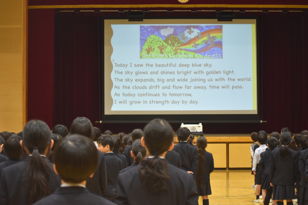 イマージョンの先生方も一緒に歌える校歌は,私たちの宝物です。