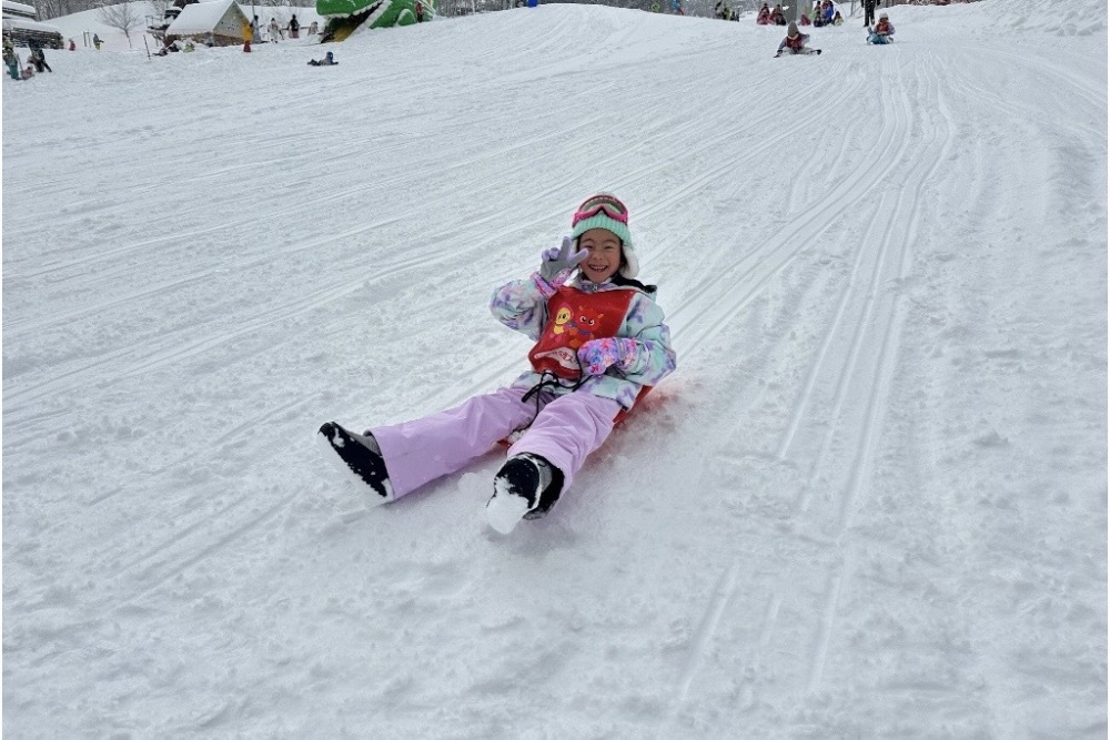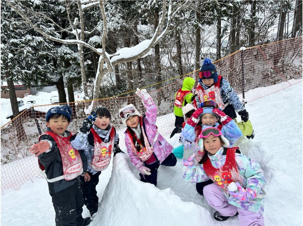 午後はいよいよ雪遊びです。そり滑りでは順番を守りながら何度も挑戦し,雪遊びでは友達と協力してかまくらを作ったり,雪の感触を楽しんだりする様子が見られました。この体験を通して,子どもたちは冬の自然に親しむとともに,友達と協力することや,公共の場でのルールを守る大切さを学びました。雪の中で思い切り体を動かし,笑顔あふれる一日となりました。