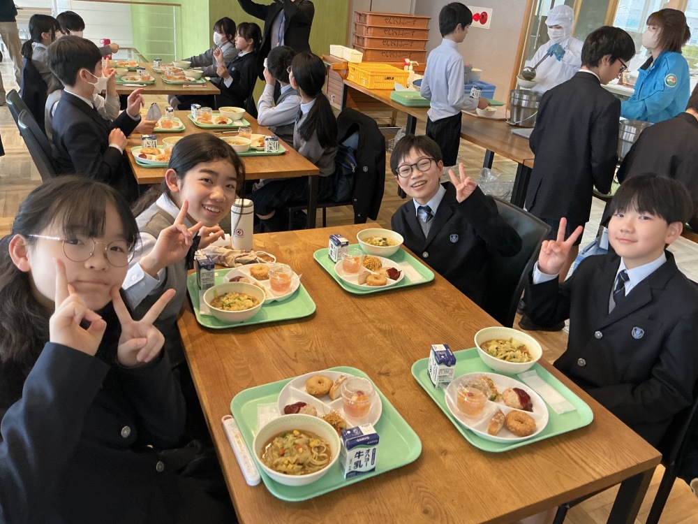 この日、調理師の方々からは卒業のお祝いの言葉と手書きのメッセージをいただき、食の大切さやありがたさ、そして食を通してつながる心の温かさを改めて感じることができました。子供たちは食べる楽しさだけでなく、作ってくださる方々への感謝の気持ちも実感し、「おいしかった」「ありがとう」の声があふれ、心もお腹も満たされる、卒業にふさわしい温かいひとときとなりました。