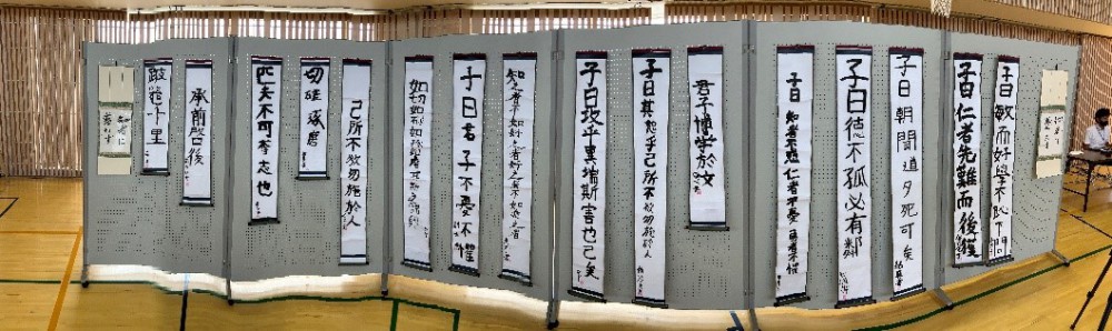 一方、就実小の発表では、代表の児童が自分の好きな論語を英語、日本語、中国語で説明しました。その後に、クラスごとに普段朝の就実タイムで実施しているように論語を3回唱えました。クラス全員が一斉に心を合わせて読んでいる様子は、とても凛々しい姿でした。