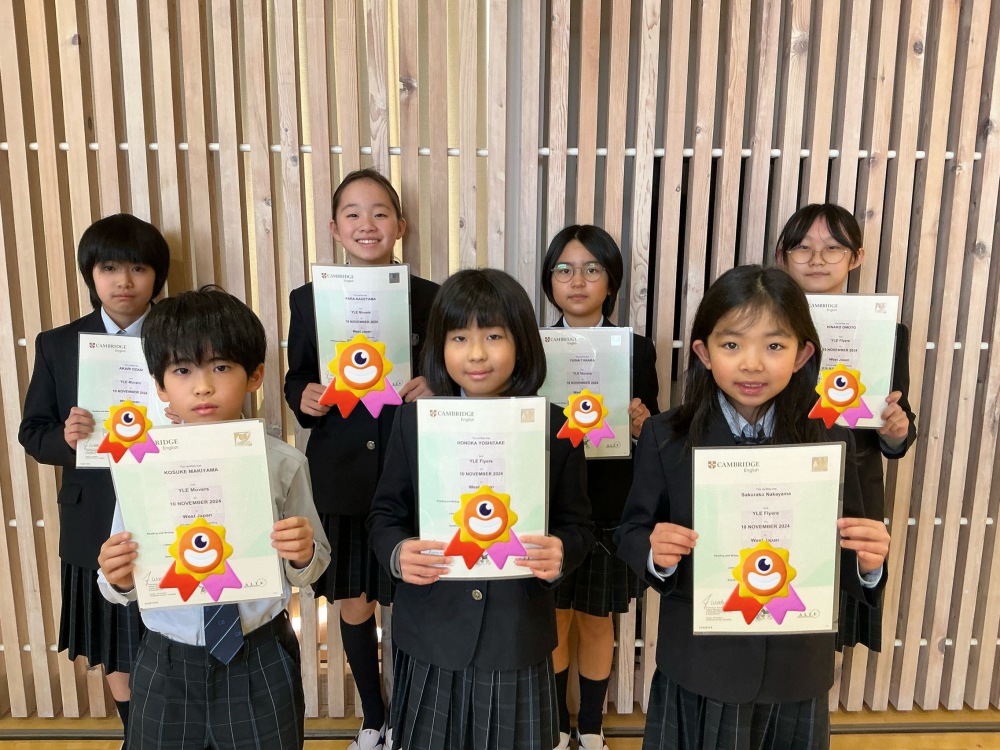 11月10日に,本校で行ったCambridge英検で,11シールド以上を獲得した2年生から5年生の児童7名を表彰しました。