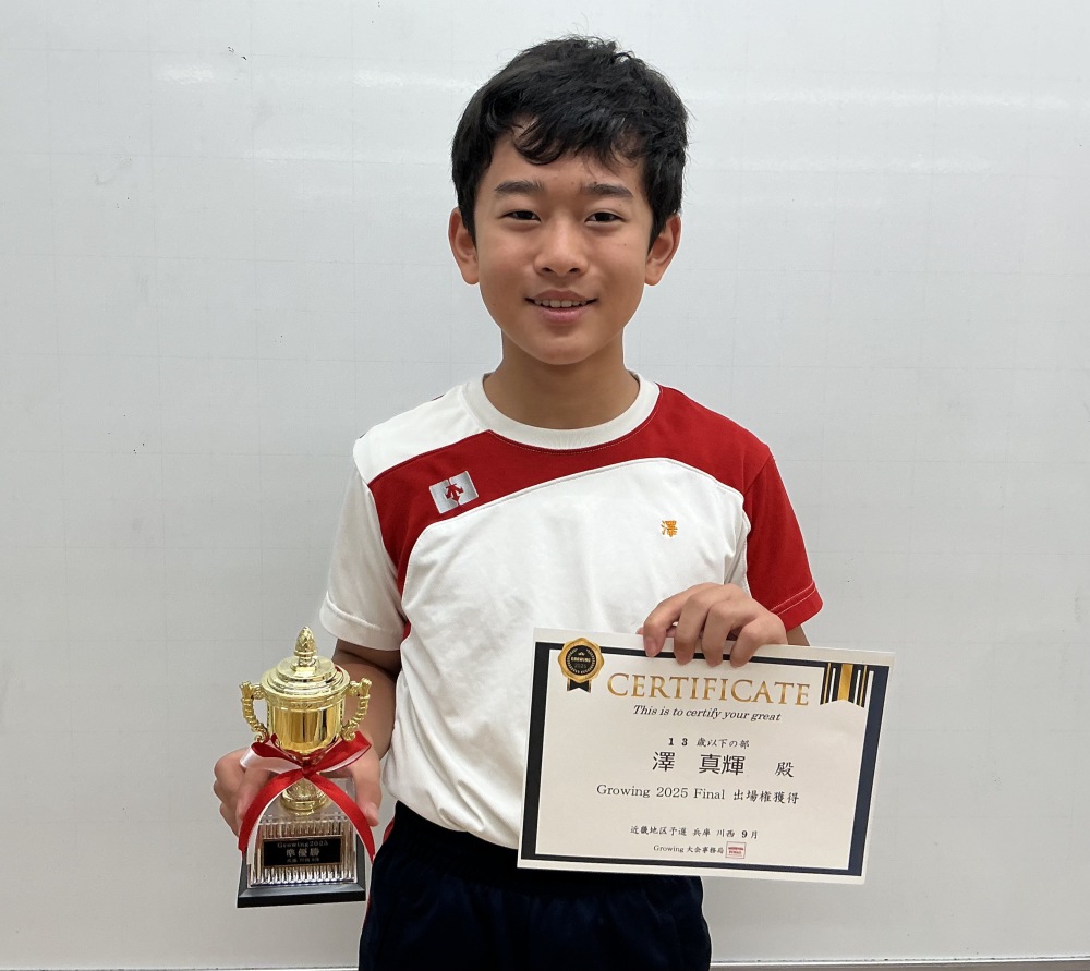 この大会は,テニスの大会です。13歳以下の部で,見事準優勝に輝きました。