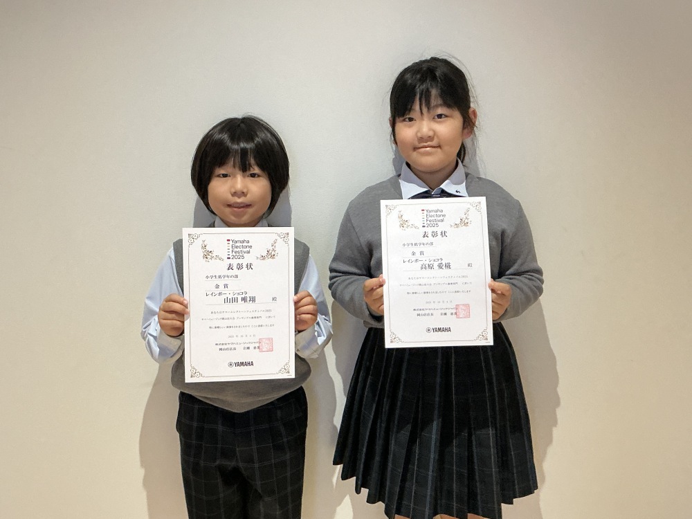 ヤマハエレクトーンフェスティバル2025岡山店大会アンサンブル演奏部門で,優秀な成績を収めた2年生を表彰しました。