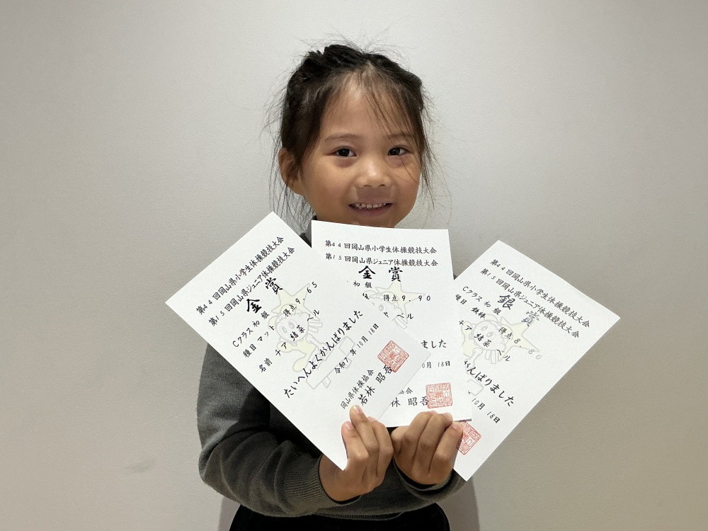 Cクラス初級の 跳躍板とマットで「金賞」,鉄棒で「銀賞」に輝きました。