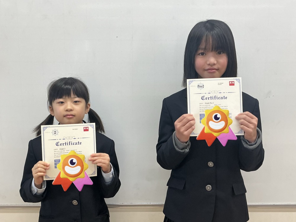 それぞれ2級(高校卒業程度,CEFLレベルB1)と準2級(高校中級程度,CEFLレベルA2)に合格しました。