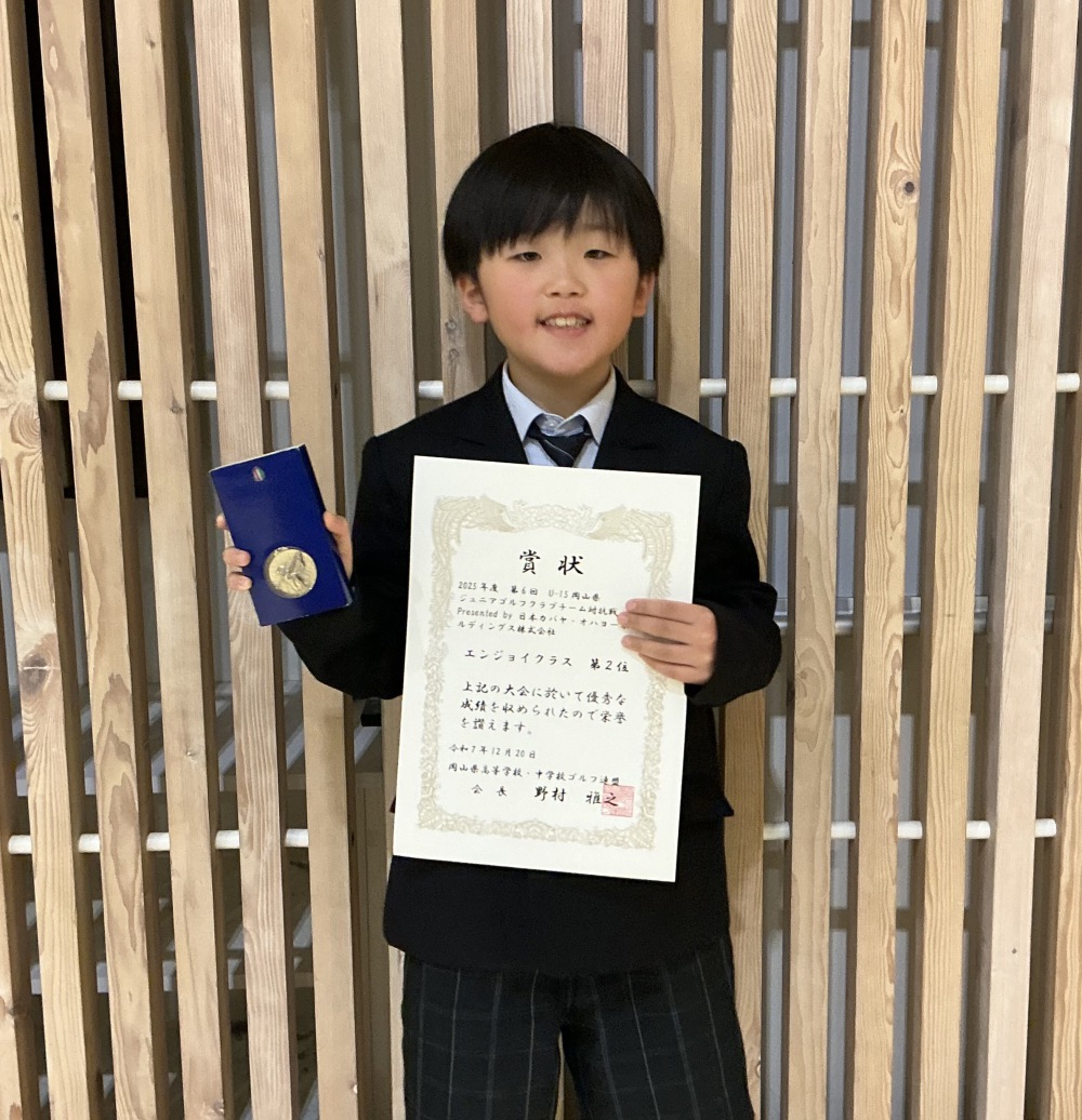 2025年度第6回U-15岡山県ジュニアゴルフチーム対抗戦で優秀な成績をおさめた3年生を表彰しました。