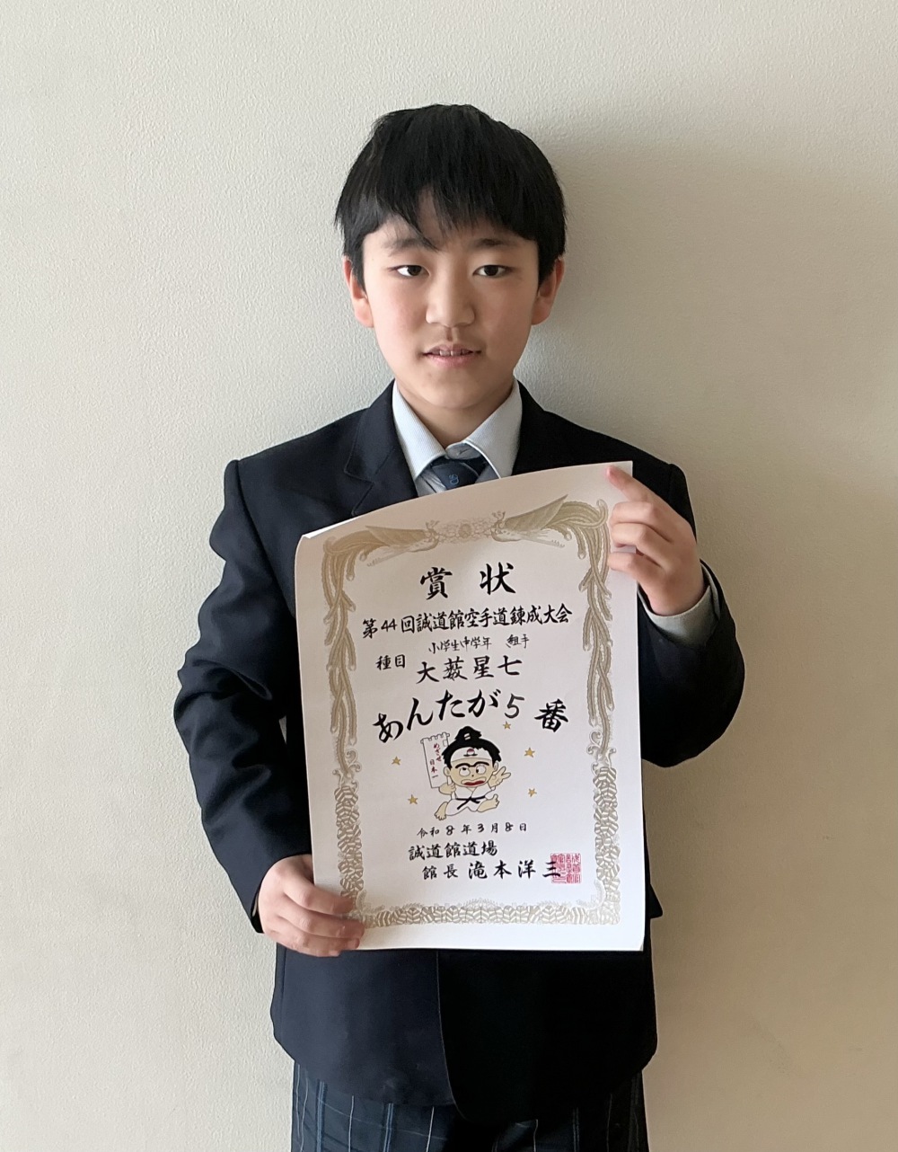 第44回誠道館空手道錬成大会で,優秀な成績をおさめた4年生を表彰しました。